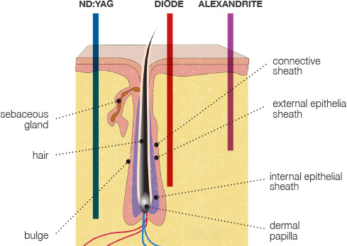 Djeluje na cijelu anatomiju dlake na tijelu zahvaljujući istovremenom delovanju 3 talasne dužine.